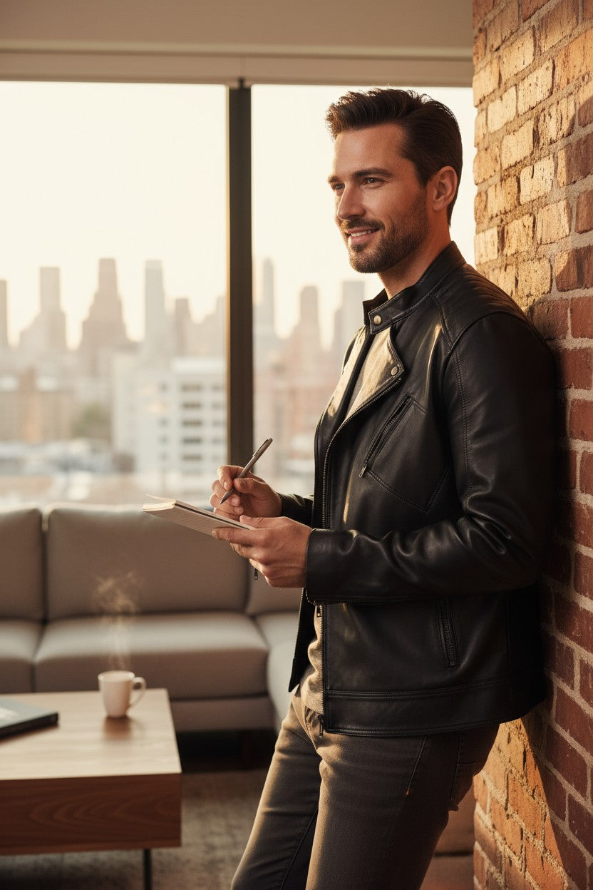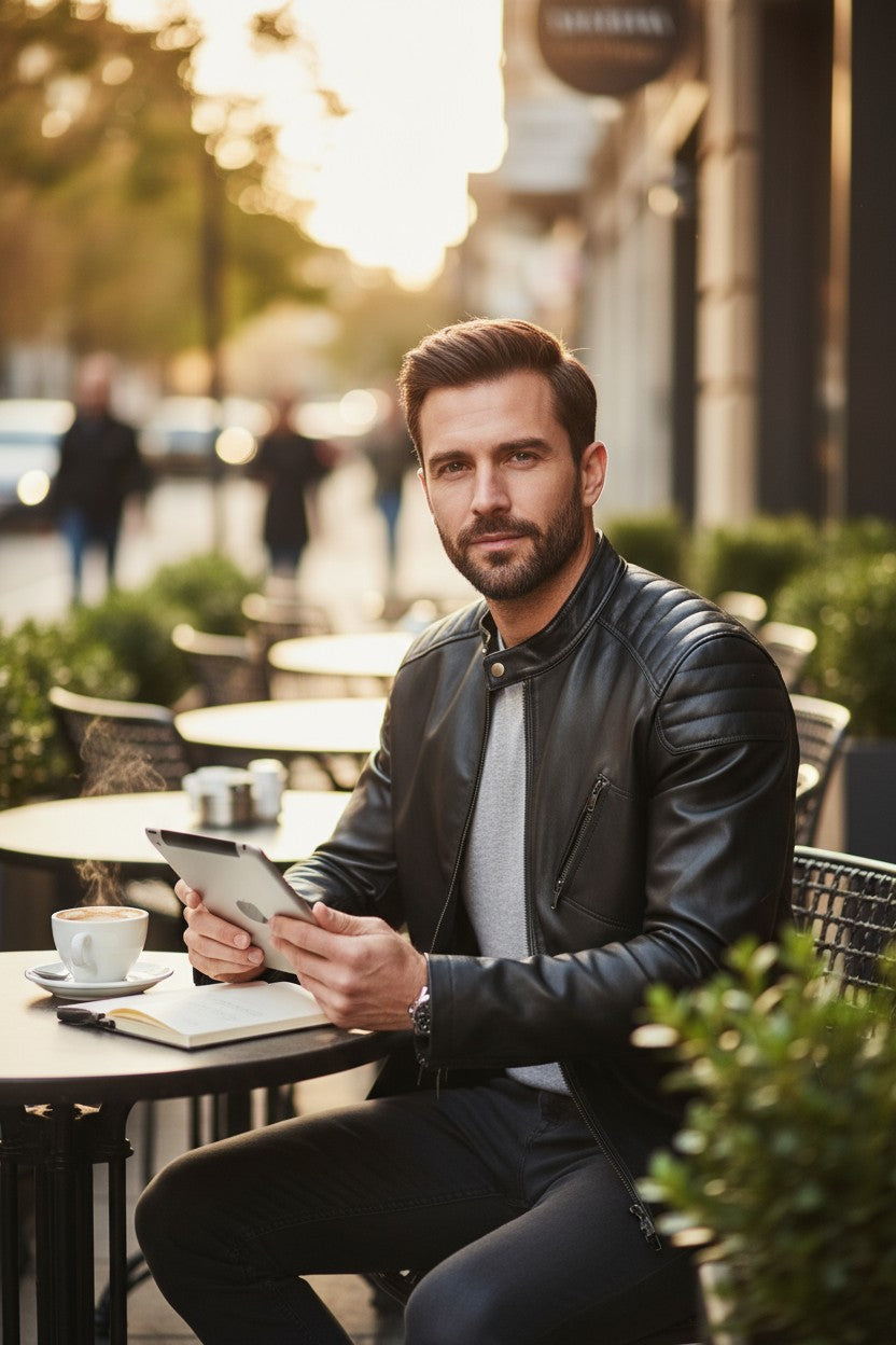 This jacket embodies contained power ready to be unleashed. Traditional construction meets contemporary details in a design that adapts from board meetings to weekend rides. Hand-selected leather ages beautifully, developing character with every wear.